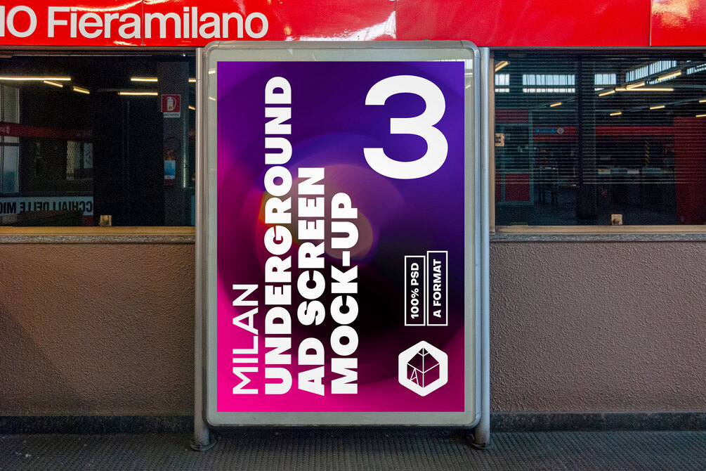 Set of 3 Milan Underground Advertising Screen Mock-Ups 1 to showcase your advertisement poster in a photo-realistic appearance. This mock-up is a fully layered PSD with a smart object feature so it's easy to replace current design just in seconds!