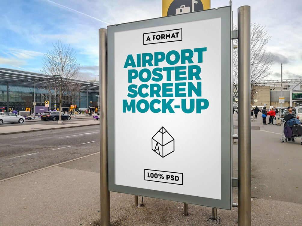 Set of 9 Airport Poster Screen Mock-Ups to showcase your poster in a photo-realistic appearance. This mock-up is a fully layered PSD with a smart object feature so it's easy to replace current design just in seconds.